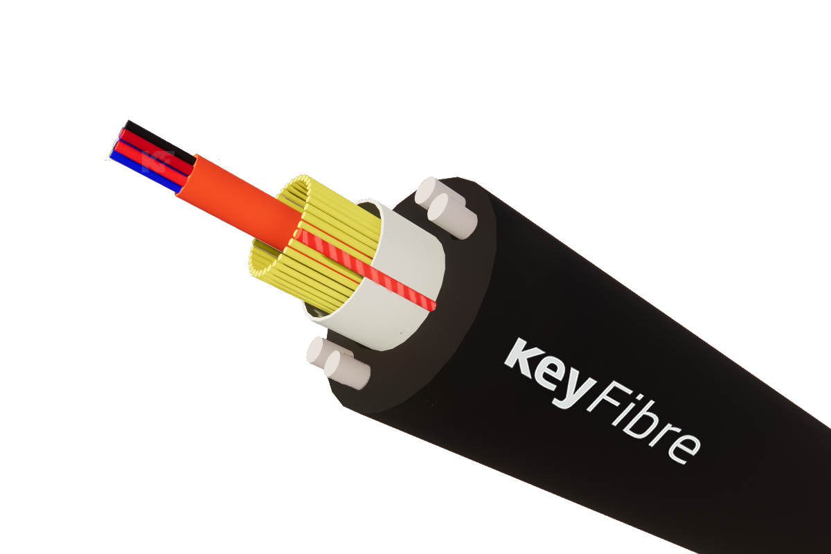 Mikromodulkabel KeyFlex® 12FO (1Tx12FO) G652D HDPE 6,5 mm ADSS 1000N. 90 m SPAN (Spannweite). Vielseitig einsetzbar: Rohrleitung/Luft/Fassade. 4000 m Spule.