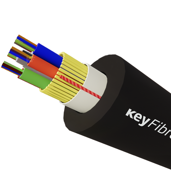 Cable multifibra 24FO (6Tx4FO) G652D KFVP 7,8mm HDPE ADSS 1500N. Antiroedor. 100m SPAN (vano). Polivalente: canalizado/aéreo/fachada. Bobina 2000m.