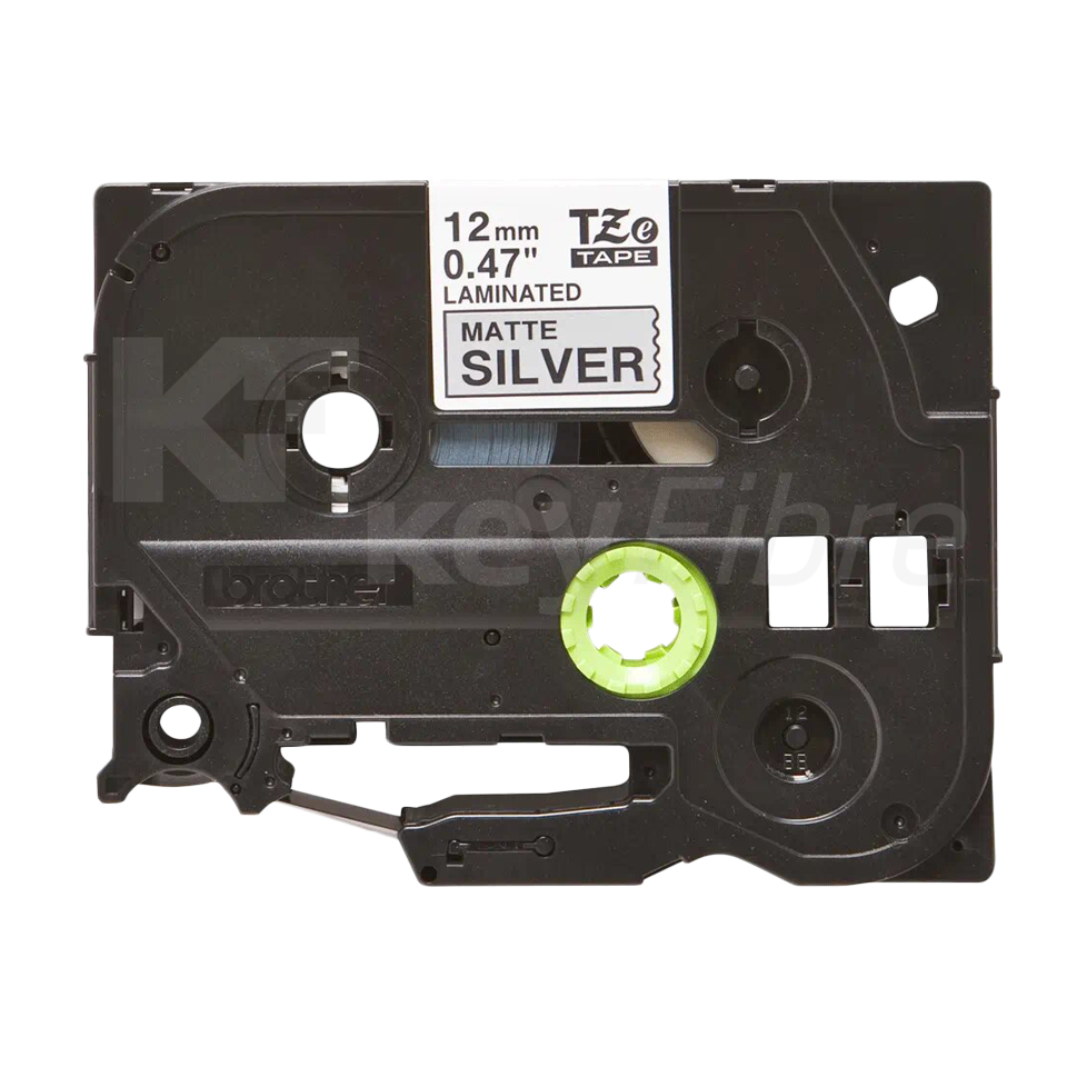 Cinta laminada Brother®. Texto negro sobre fondo plata mate. Ancho: 12 mm. Longitud: 8 m.