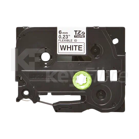 Cinta laminada flexible Brother®. Texto negro sobre fondo blanco. Ancho: 6 mm. Longitud: 8 m.
