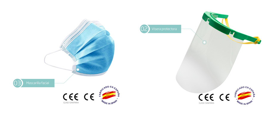 2º Kit de protección facial compuesto por mascarilla y visera protectora